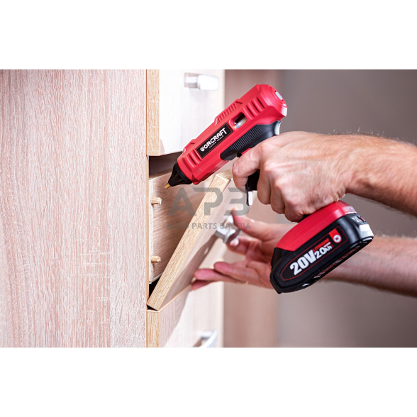 Karštų klijų pistoletas WORCRAFT CLG-S20Li yra įrankis, skirtas bet kokioms medžiagoms klijuoti naudojant klijų lazdeles.