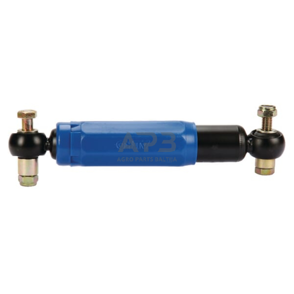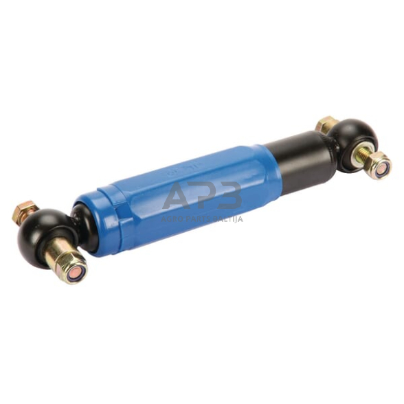Properties Powder-coated axle shock absorber Rubber-mounted link connection eyes M12 Bush length, top 47 mm Bush length, bottom 40 mm Bolts firmly integrated into the eye of the damper
