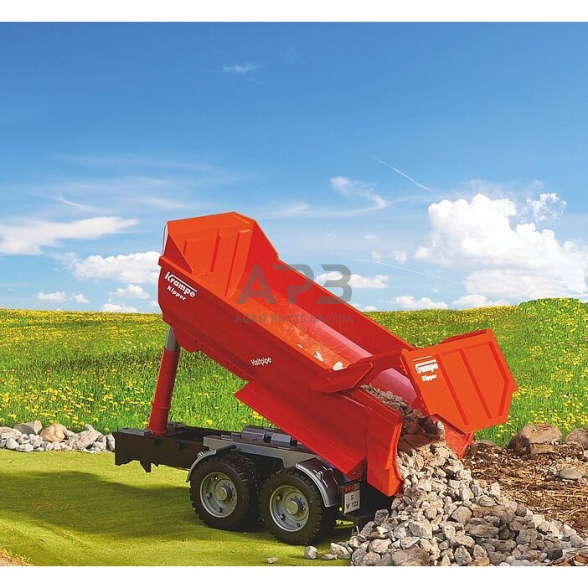Aprašymas: Pusvamzdinės savivartės priekabos tampa vis populiaresnės, kad būtų galima efektyviai atlikti žemės pervežimą. Ypač kai gruntas yra purvinas ir sunkus, dažnai pirmenybė teikiama galingo traktoriaus ir pusvamzdžio tandeminės ašies priekabos deriniui, o ne sunkvežimiui. Tačiau ši priekaba taip pat dažnai sutinkama žemės ūkyje. Modelis BRUDER pasižymi detaliu dizainu ir, kaip ir originalas, turi tuos pačius privalumus galingam žemės darbui smėlio dėžėje. Tvirta konstrukcija, krovinys optimaliai centruojamas dėl formos, o tai reiškia, kad svorio centras yra viduryje ir pasiekiamas geresnis važiavimo stabilumas nei naudojant dėžės formos antstatus. Išvertimo cilindras yra išdėstytas centre priešais lovį, o tai originaliai užtikrina puikų jėgos perdavimą į lovelį išvertimo proceso metu. Modeliui tai taip pat naudinga, nes su laipteliu, kuris praturtina žaidimą ir suteikia neprilygstamą išvaizdą. Krampe Halfpipe tandeminė savivartė priekaba yra dar vienas mūsų žemės ūkio priekabų programos akcentas.