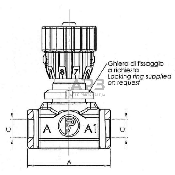 Techninė informacija Šis srauto droselio vožtuvas sumažina alyvos srautą nuo A1 iki A ir turi laisvą srautą nuo A iki A1. Šie vožtuvai yra su graduota pasukimo rankenėle, kuri yra standartinė. Naudojimas: didelis srautas