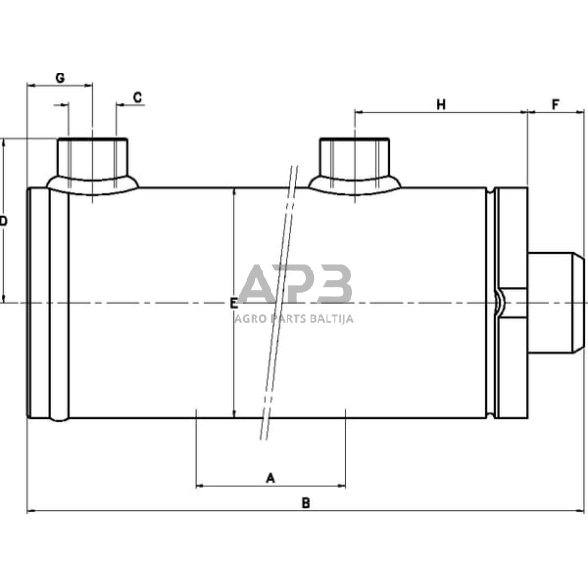 Alyvos jungties centro ir cilindro galo atstumas - strypo pusė (H): 44 mm