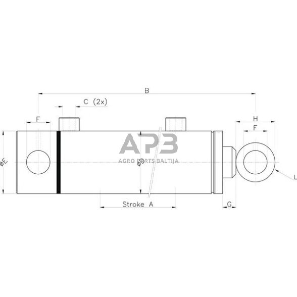 Atstumas nuo cilindro galo iki tvirtinimo įvorės (G): 38,5 mm