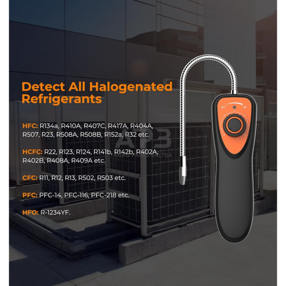 Halogeno nuotėkio detektorius naudojamas aptikti nuotėkius ŠVOK (šildymo, vėdinimo ir oro kondicionavimo) sistemose ir saugojimo / regeneravimo konteineriuose. Jis reaguos į visus halogenintus (įskaitant chlorą ir fluorą) šaltnešius(freoną). Jis taip pat gali aptikti halogenines dujas gaisro gesinimo sistemoje.