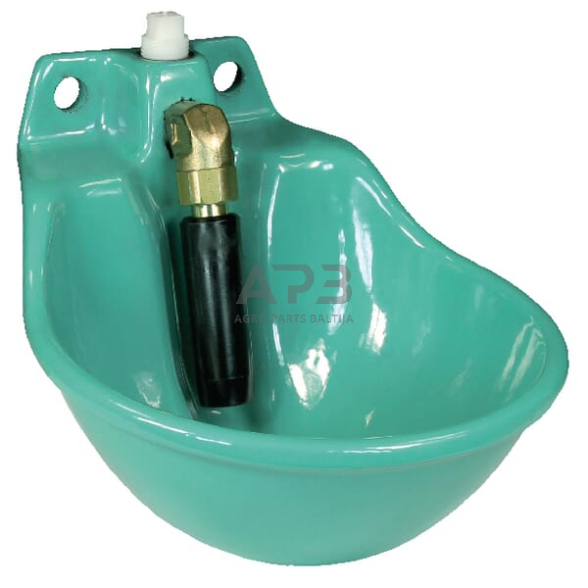 Long description Application : For: cattle and horses Properties : Cast iron water dish, fully enamelled Smooth-running brass pipe valve with ½\" male thread connection from above Quite water inlet through the pipe valve Increase the size of the nozzle bore to control water Volume