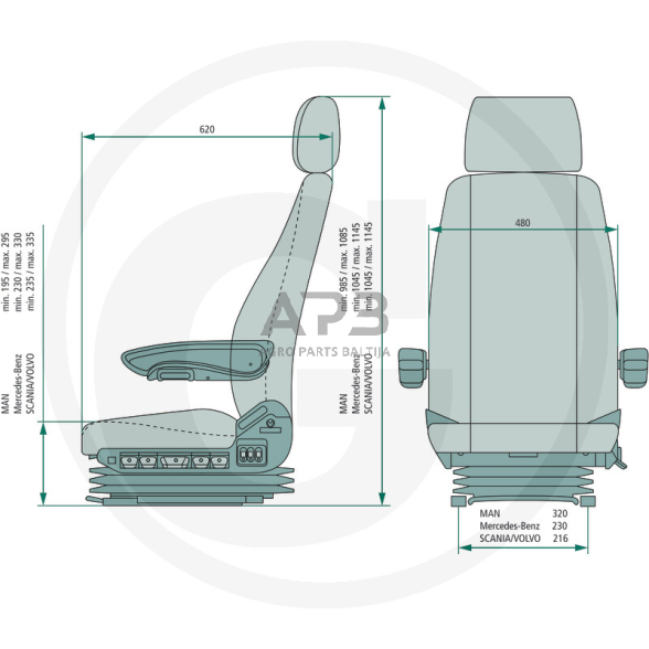 Traktoriaus sėdynės pagalvėlės pasvirimo reguliavimas