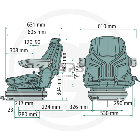 Patogi sėdynė su pneumatine pakaba ir kompresoriumi
