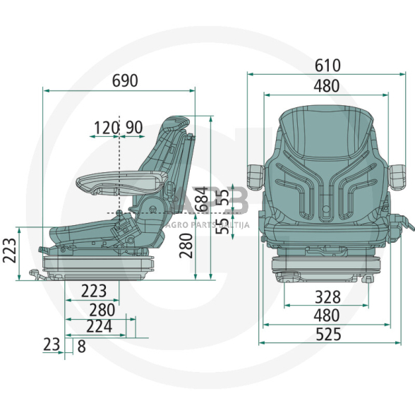 Patogi sėdynė su pneumatine pakaba ir kompresoriumi