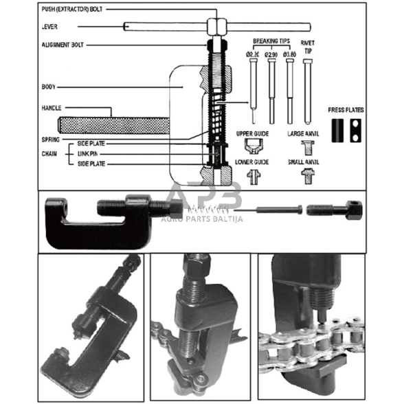 Tinkamas variklio, varomosioms, motociklų ir kitoms grandinėms nuo 35 iki 630 dydžio