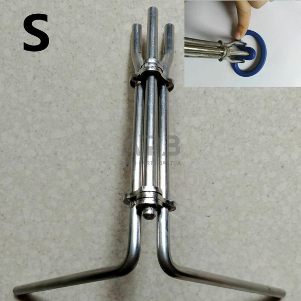 Su šiuo įrankiu padarysite mažesnę nei skylė į kurią žadate dėti tarpinę, pasukus sandariklį į omega formą, galima išvengti nereikalingos žalos cilindrui