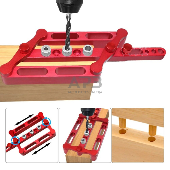 Reguliuojamos atramos kurių pagalba tiksliai išgręšite skylę išilgai medienos.