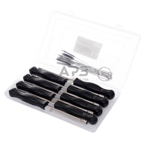 Komplektą sudaro: 8 raktai ir purkštukų valymo šepečiai
