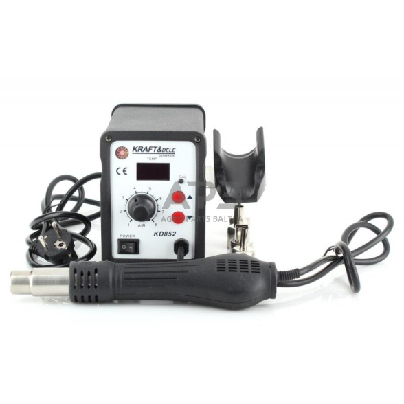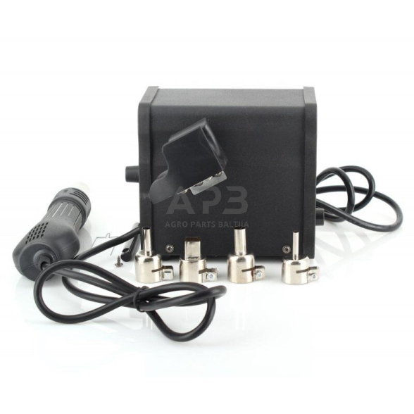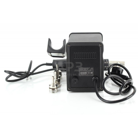 Į komplektą įeina: 858D litavimo stotelė, apvalūs antgaliai 4.4, 7 ir 9 mm, BGA 12 x 12 mm antgalis