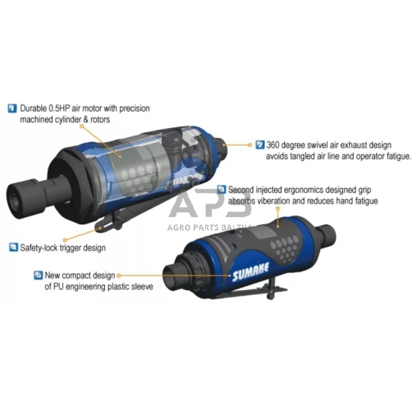 Patvarus 0.75 kW oro variklis su tiksliai apdirbtu cilindru ir rotoriais