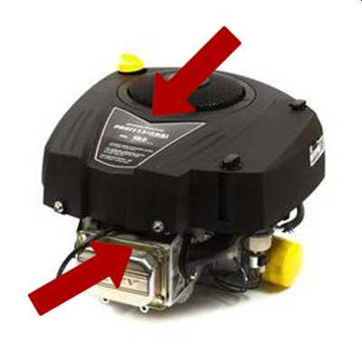 Dauguma žoliapjovių variklių (Classic, Sprint, Quattro, Quantum, 450E-675E serijos) numerius turi vienoje iš trijų vietų.A. Virš duslintuvo (Priekyje) Tai dažniausia vieta senesniuose varikliuose. Numeriai įkalti ant metalinės skardos (apsaugos), kuri dengia duslintuvą, arba dešinėje pusėje virš jo.