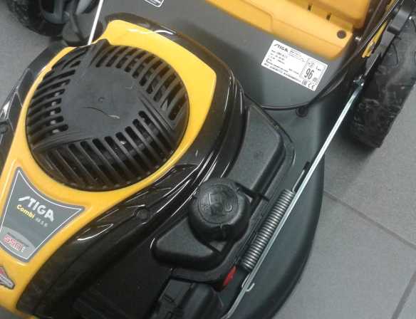 - Šalia žolės surinkimo krepšio angos, vejapjovės viršuje (žr. nuotrauką žemiau);