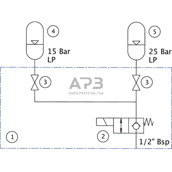 Papildoma informacija Vieno veikimo cilindras yra prijungtas prie 1/2 colio jungties Kai transporto priemonė važiuoja, atsirandantys slėgio smailės gali nutekėti į akumuliatorius. Taip slopinama vibracija ir smūgiai.