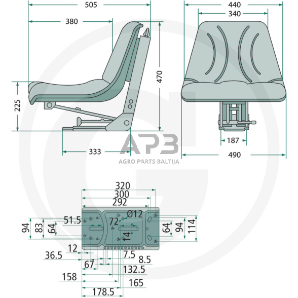 Traktoriaus sėdynės duomenys: