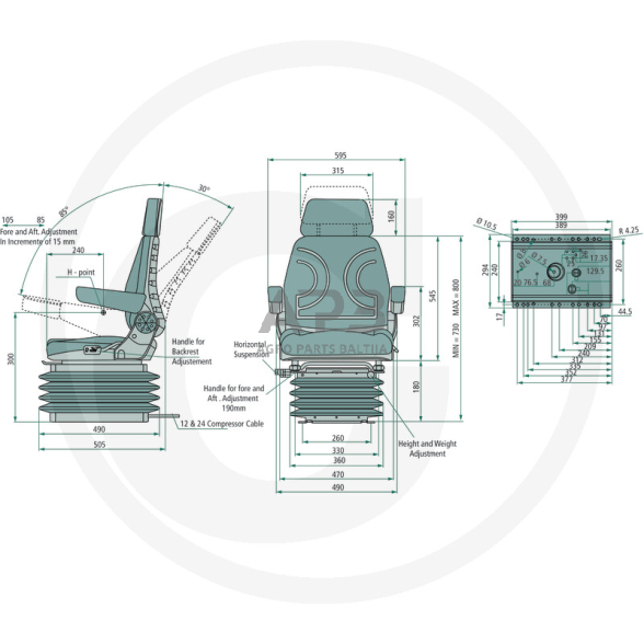 Traktoriaus sėdynės duomenys: