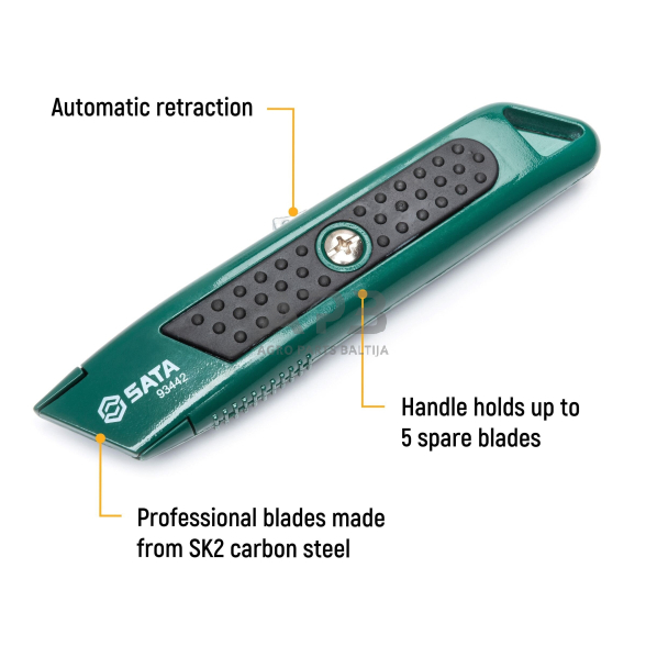 Lengvai pasiekiamas ašmenų laikymo skyrius korpuse talpina papildomus peiliukus