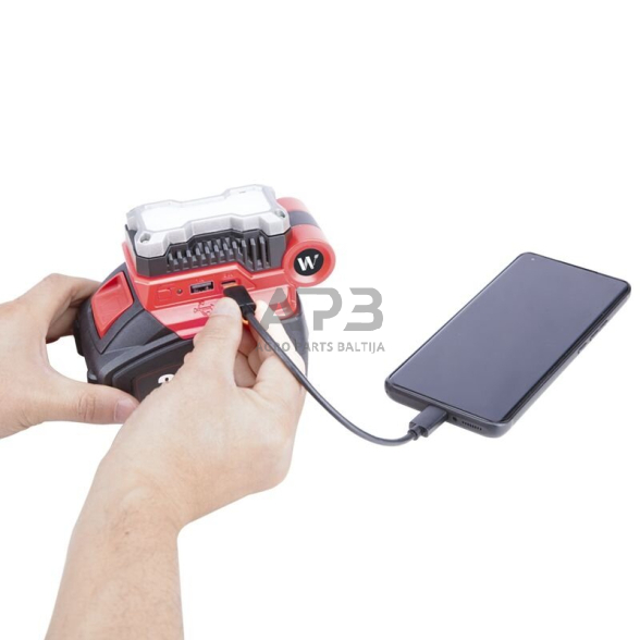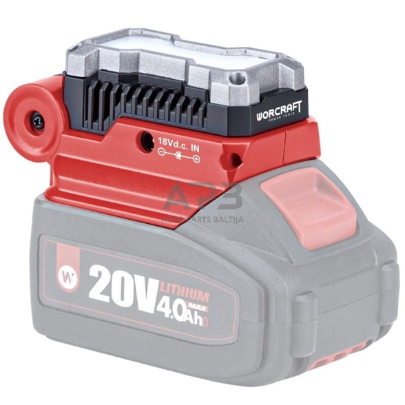 Įrenginys turi LED lempą apšvietimui, sumontuotą 7 padėtyse. Be to, adapteriu galima įkrauti WORCRAFT serijos baterijas.