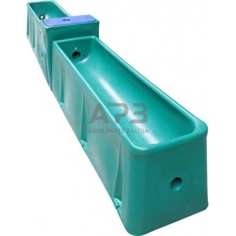 Long description SUEVIA Thermo-drinking trough model 6543 is a double-walled, insulated drinking trough made of high-quality UV-resistant polyethylene. It can be attached to the floor and is optimally transportable thanks to its compact and stable design. The drinking trough Consists of two parts. A drinking trough with float housing and the extension, which can be mounted to the float housing using a connection kit. It comes standard with a Maxiflow float that ensures high water release, and a second float can be added in case of higher water demand. The conical and tapered bottom, with large drain plug, makes the drinking trough easy to clean and the insulated float cover can be removed without tools to adjust or clean the float. The large service opening makes it easy to connect water and possibly electricity. The very good insulation ensures frost protection in winter, cool water in summer and high stability. Show more