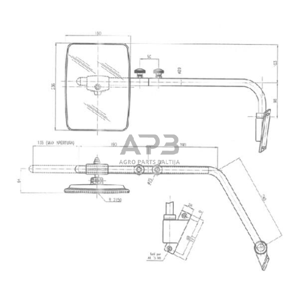 • Veidrodėlis su laikikliu dešinės pusės 236x180mm SMAT NORD CA6477000