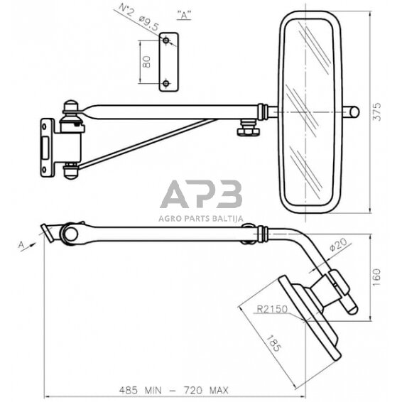 • Veidrodėlis su laikikliu dešinės pusės 375x187mm SMAT NORD CA6396000
